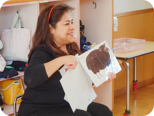 絵本やカードを使って、英語の先生やお友だちと触れ合いながら学んでいます。
