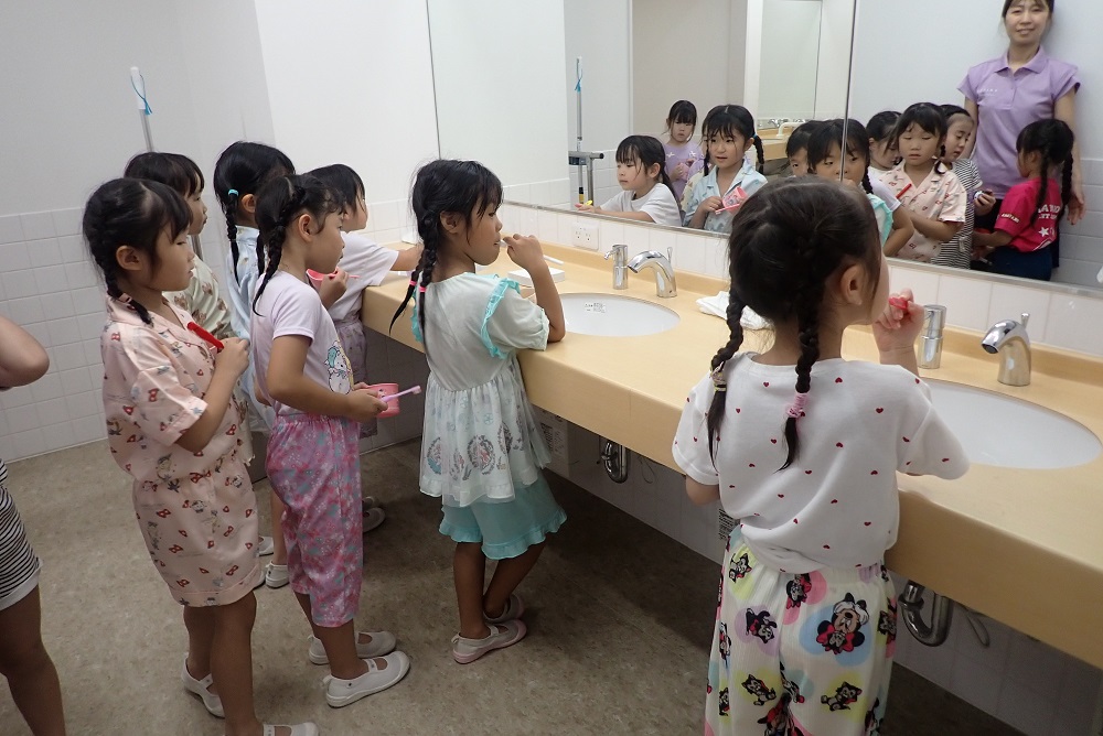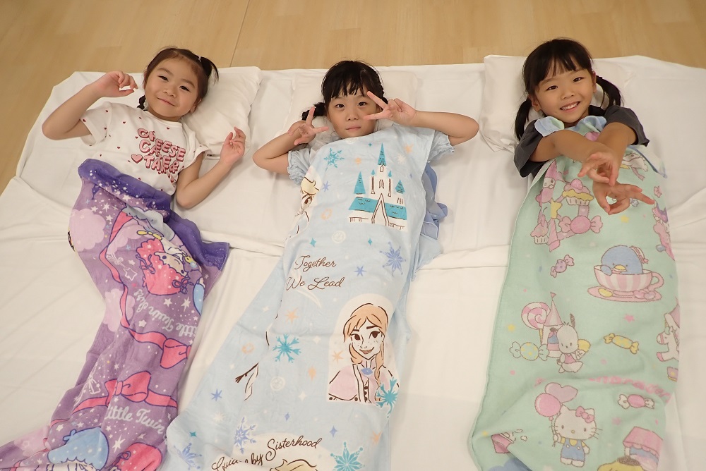 さあ、いよいよ就寝準備。今日は家族の人がいないけど、お友だちと一緒だから全然さみしくなかったね。