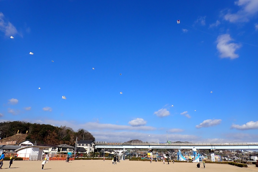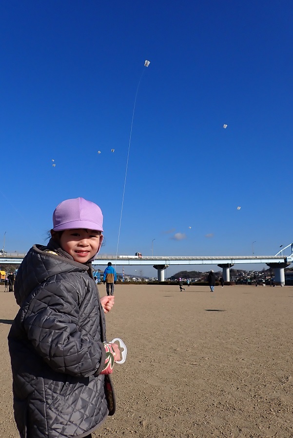 「明日お休みだからまた凧あげやりに来ようかな。}