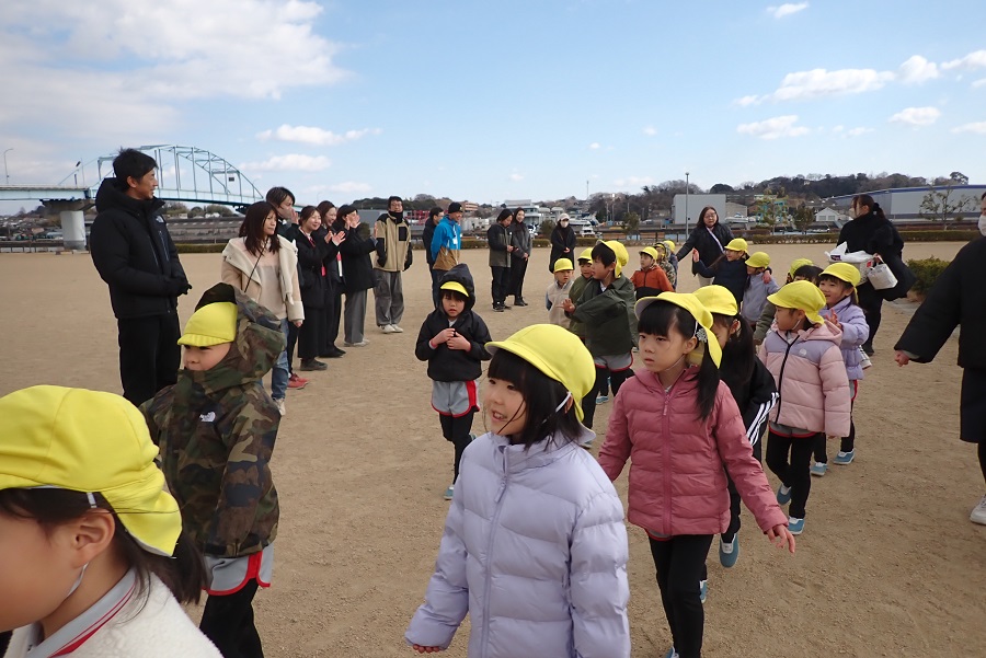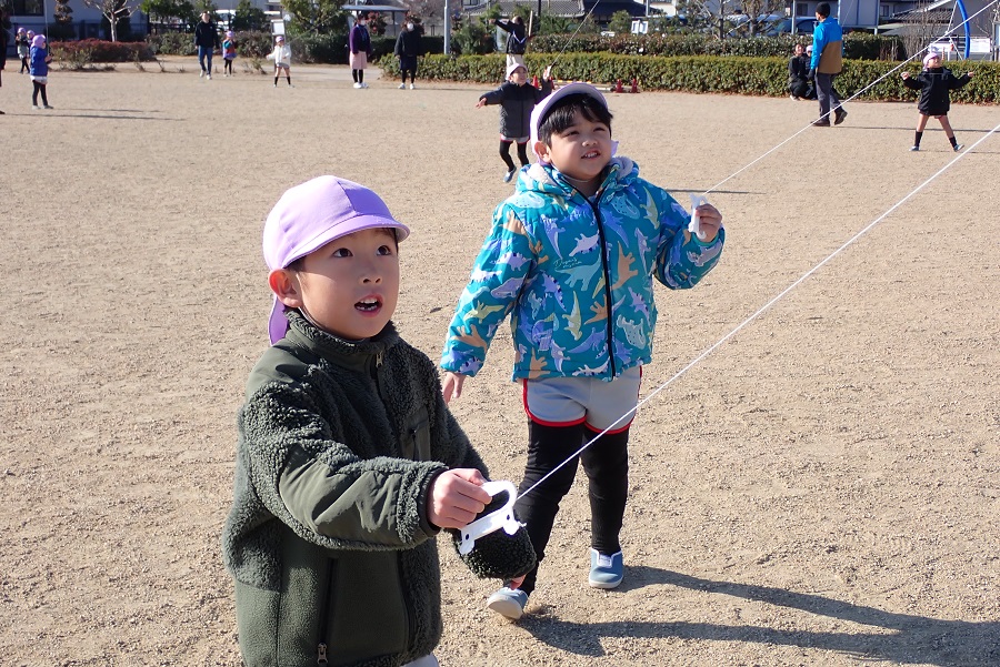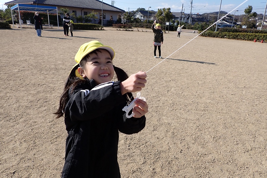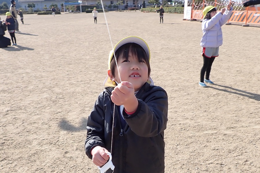 みんな凧あげを思いっきり楽しんで、大満足。